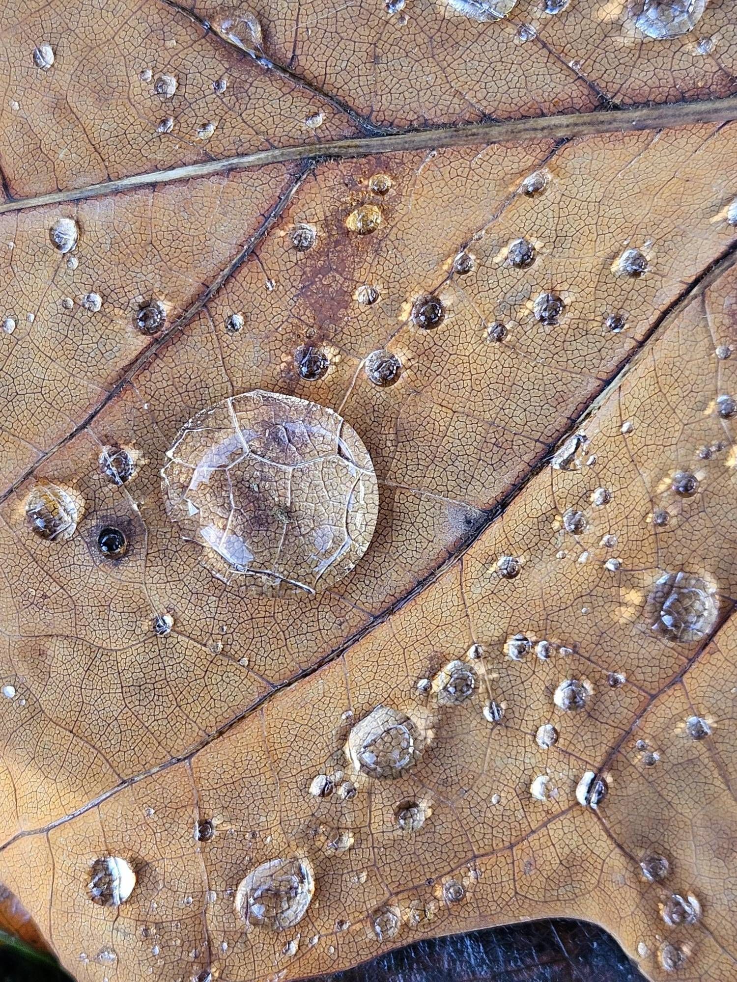 In der Pause habe ich einen wunderschönen und besonderen Wassertropfen auf einem Blatt entdeckt.