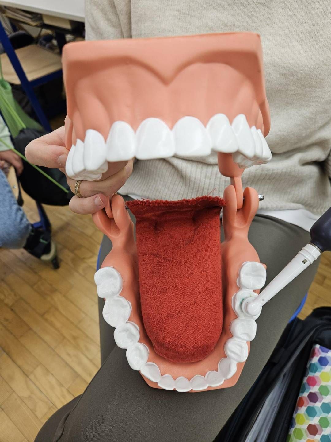 Wir lernten die KAI-Methode kennen, mit der gründliches Zähneputzen ganz einfach gelingt. Anschaulich wurde erklärt, wie Karies entsteht und aus welchen Teilen ein Zahn besteht. Besonders spannend: Frau Zerina Sivič, Zahnarztassistentin, stellte die Instrumente vor, die ein Zahnarzt benutzt und zeigte deren Funktionen.