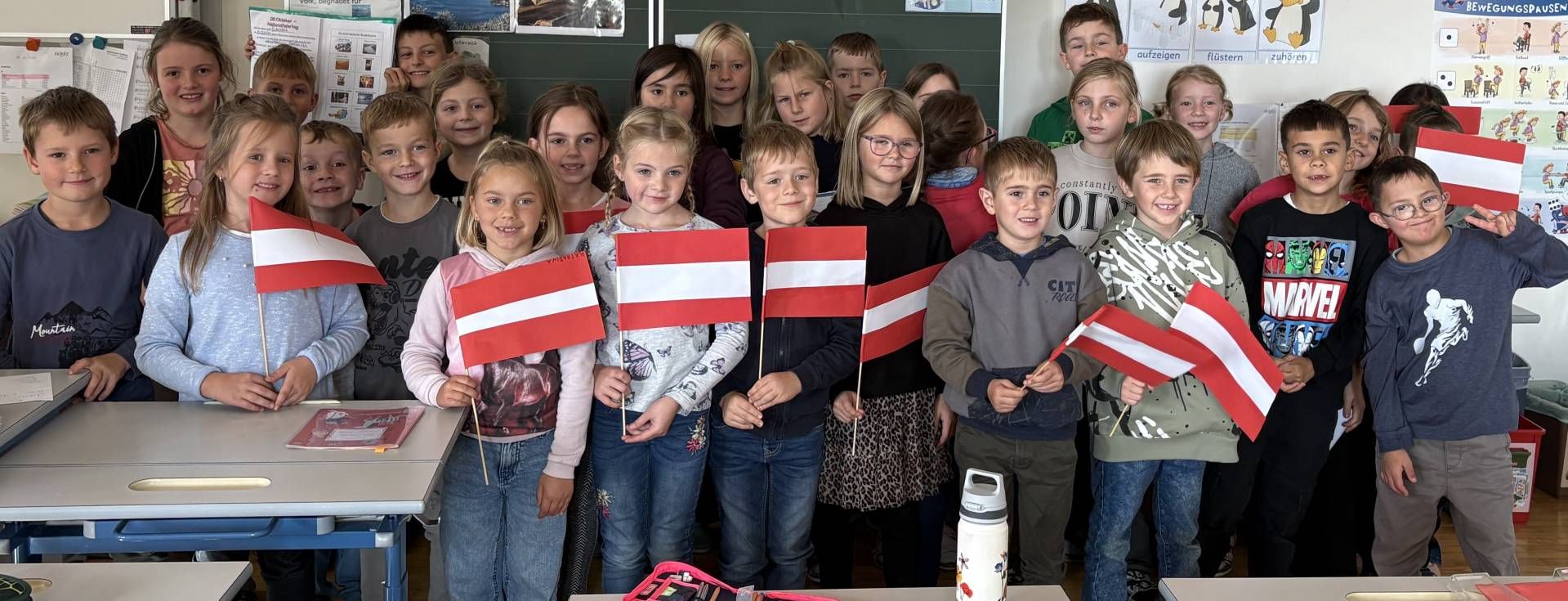 Anlässlich des 26. Oktobers gab es heute mit der ersten und dritten Klasse eine kleine Feier.