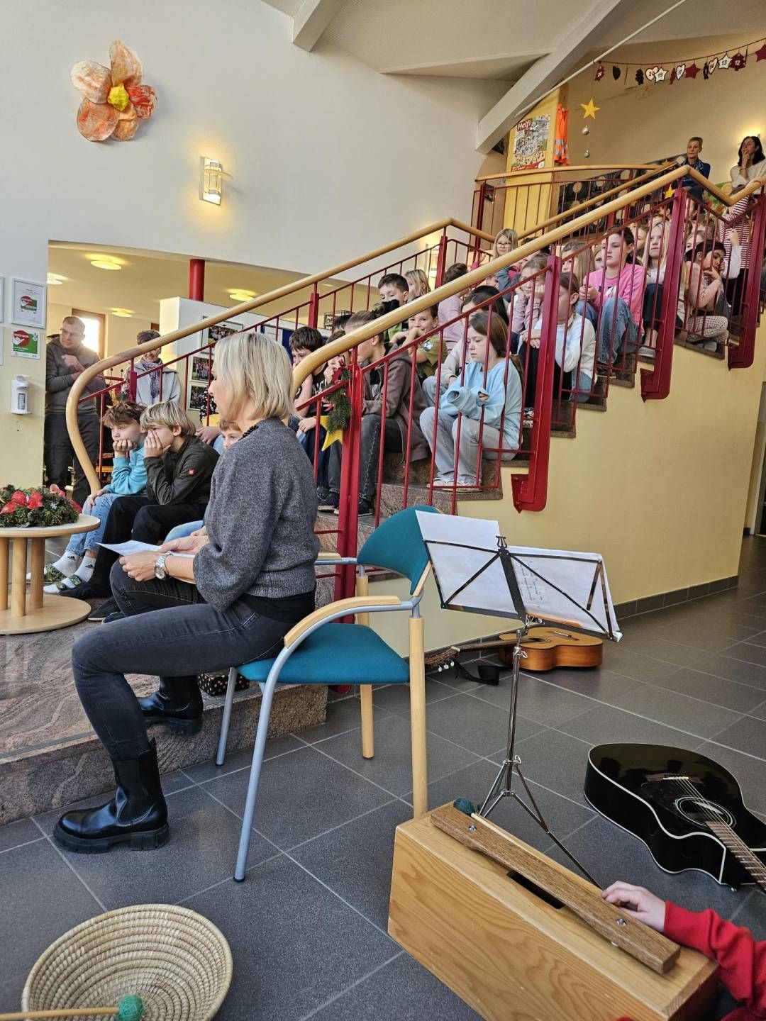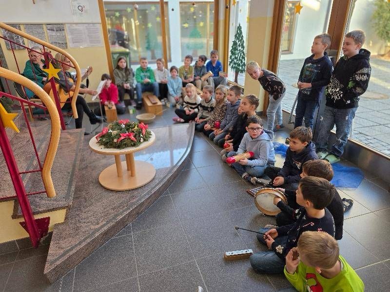 Heute fand unsere gemeinsame Adventfeier statt, die von den Kindern der 2. Klasse liebevoll vorbereitet und gestaltet wurde. Nach gemeinschaftlichem Singen eines Adventliedes, das für eine besinnliche und fröhliche Stimmung sorgte, zeigten die Kinder der 2. Klasse bei ihrer Klanggeschichte und einem wunderschönen Lied zum Thema „Kerzen“, ihr musikalisches Talent.