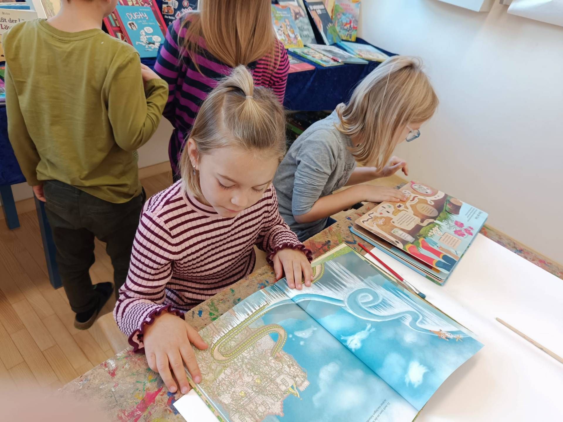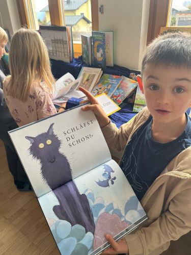 In unserem Schulhaus ist derzeit zum zweiten Mal die Buchausstellung „Lesewelten“ aufgebaut – wie schon im vergangenen Jahr findet sie eine Woche vor dem Sprechtag statt. Unsere Schülerinnen und Schüler stöbern täglich in den bunt gemischten Büchern, entdecken spannende Geschichten, Sachbücher und Bilderbücher und tauschen sich über ihre Leseerlebnisse aus.