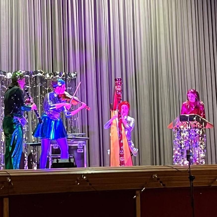 Die vier Musikerinnen begeben sich im Jahr 2236 in einem Raumschiff auf abenteuerliche Entdeckungstour: Nach langer Pause scheint ihre Musik fast vergessen, bis ein geheimnisvoller Flyer sie zum Planeten Fantasia führt. Gemeinsam mit dem Publikum starten sie in ein klingendes Abenteuer, bei dem Instrumente wiederentdeckt, Stimmen zum Leben erweckt und sogar ein magisches Hackbrett zur Rettung eingesetzt wird.