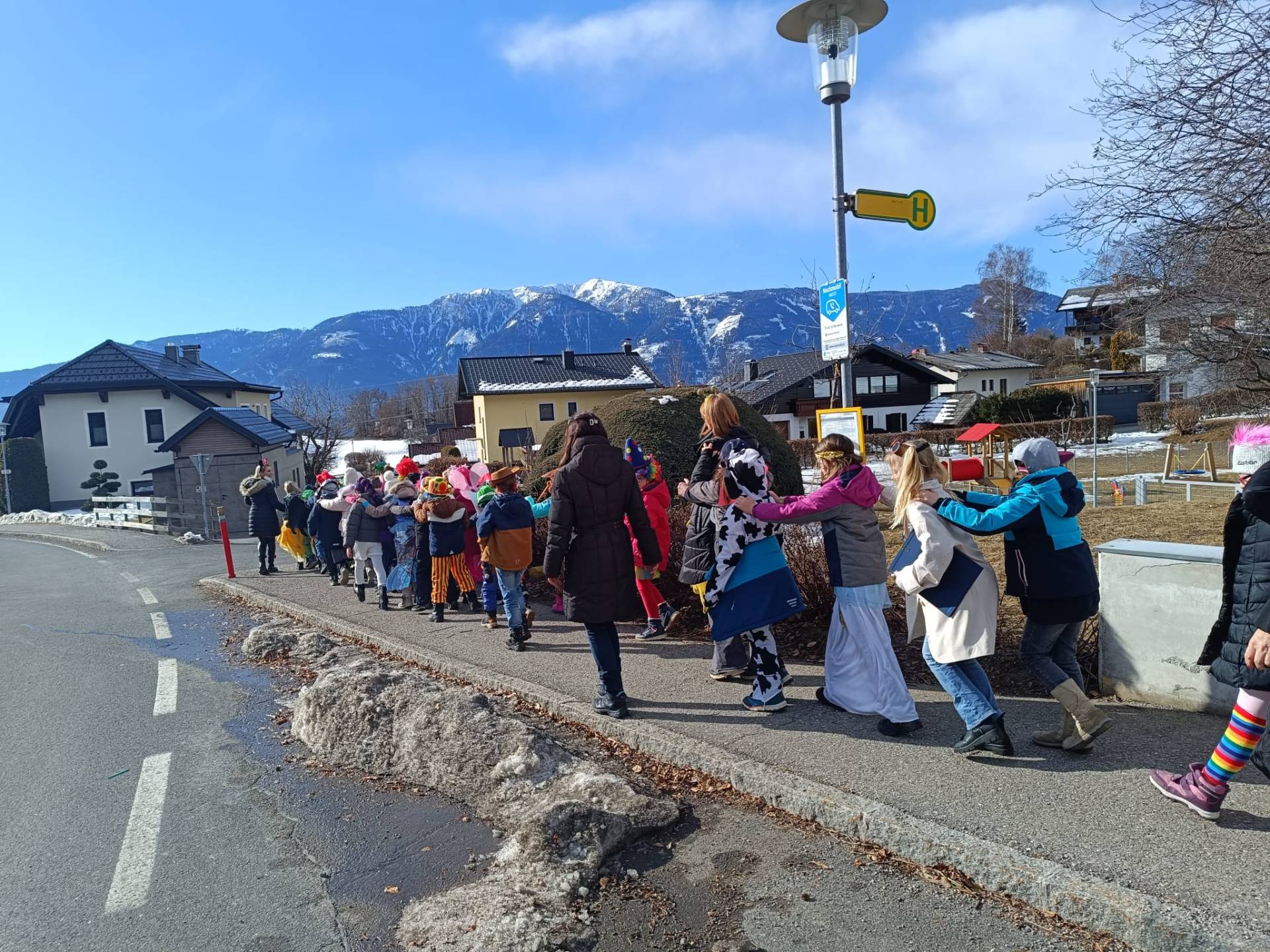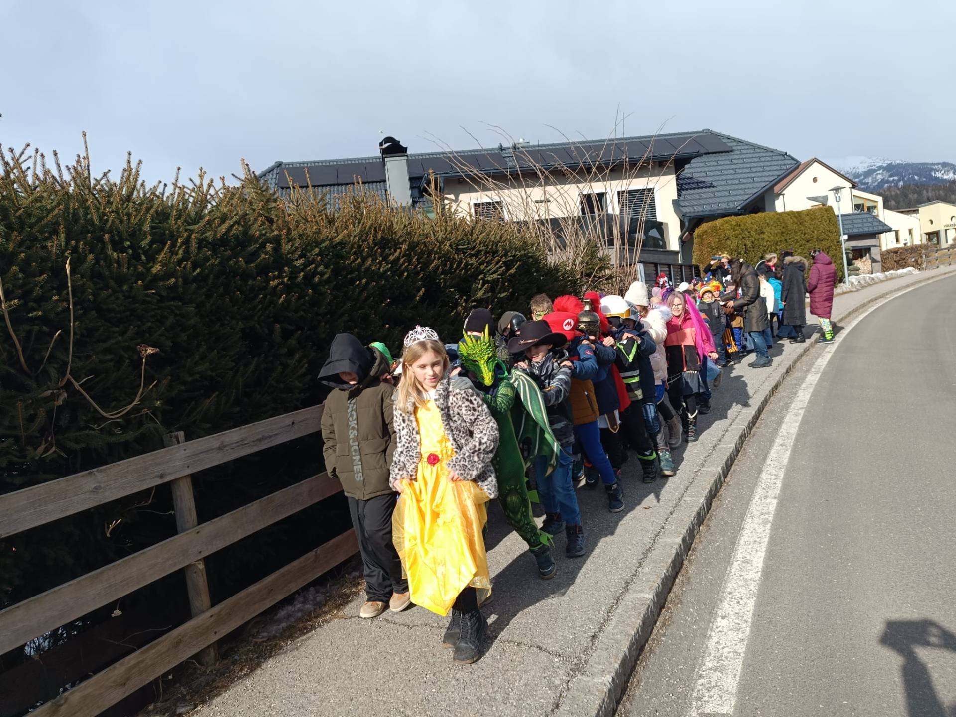 Unter diesem fröhlichen Motto zogen die Kinder der VS Treffling am Faschingsdienstag bunt verkleidet und bestens gelaunt durchs Dorf. Mit einer schwungvollen Polonaise und lustiger Musik sorgten sie überall für gute Stimmung.