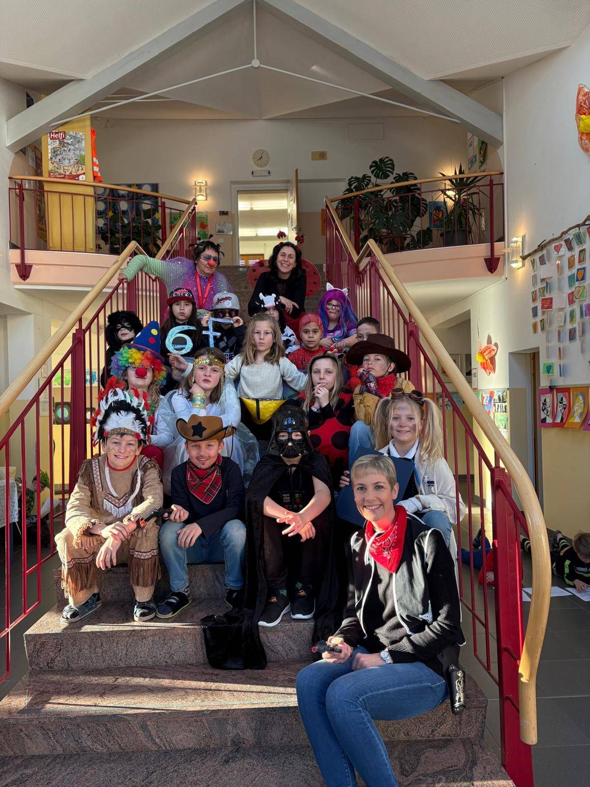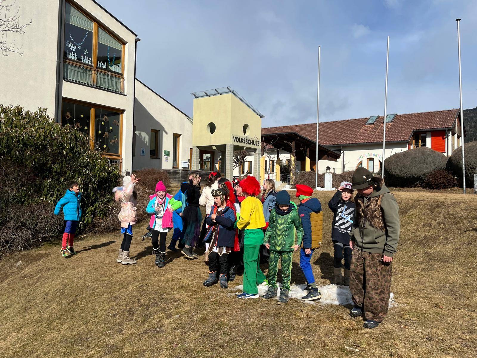 Zum Abschluss wurde im Schulhof noch ordentlich gefeiert: Bei lustigen Gemeinschaftstänzen und mitreißender Partymusik endete ein fröhlicher und unvergesslicher Faschingstag! 🎭🎵