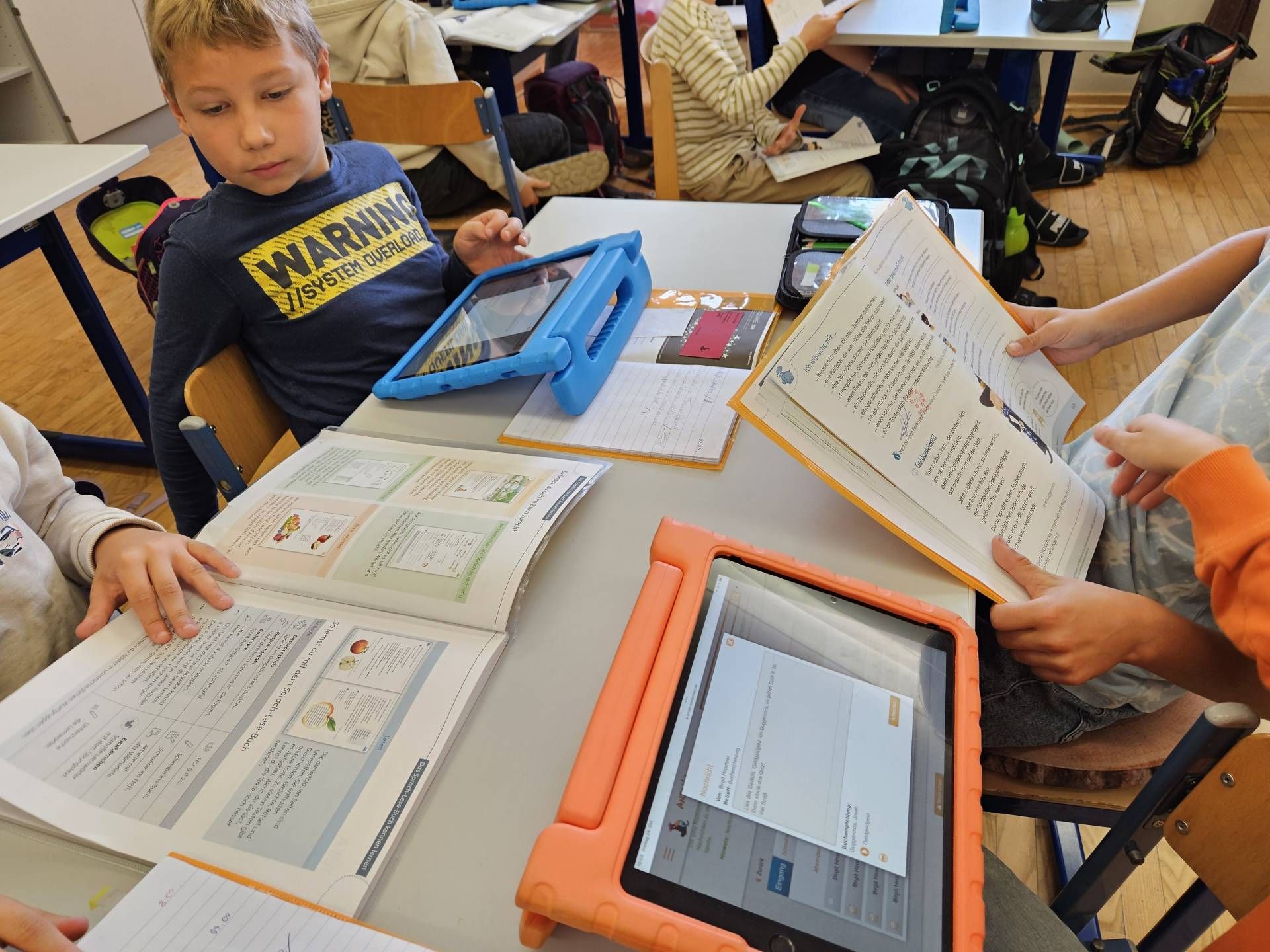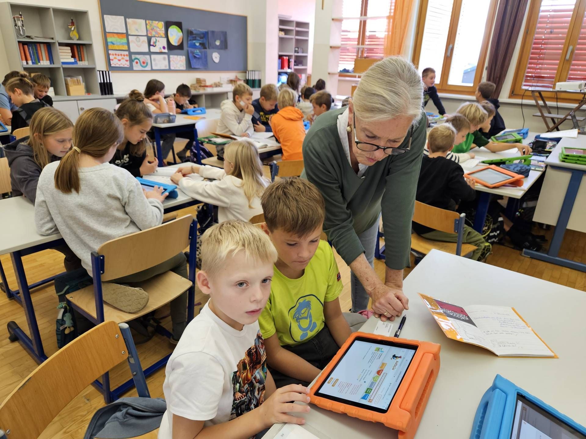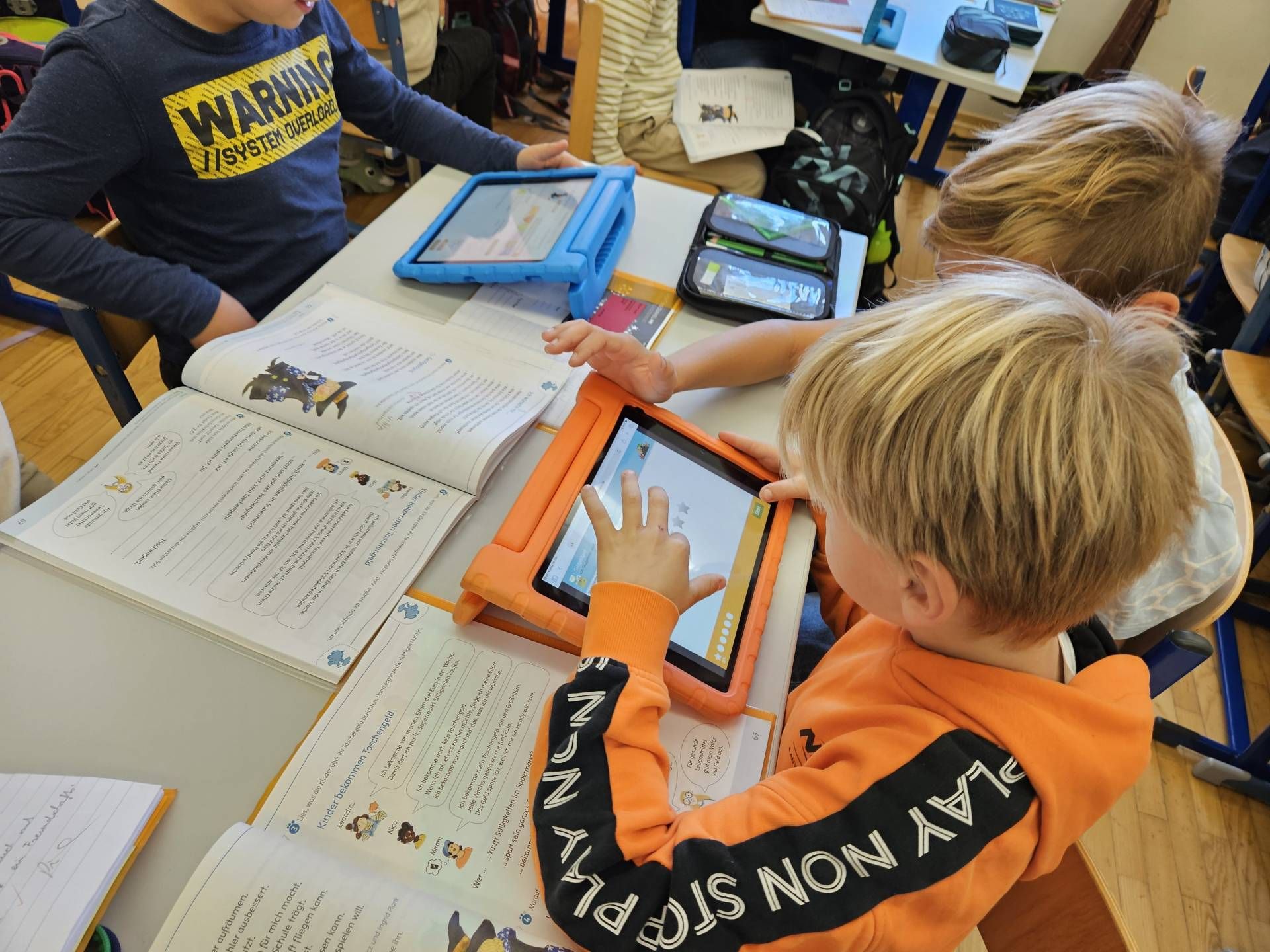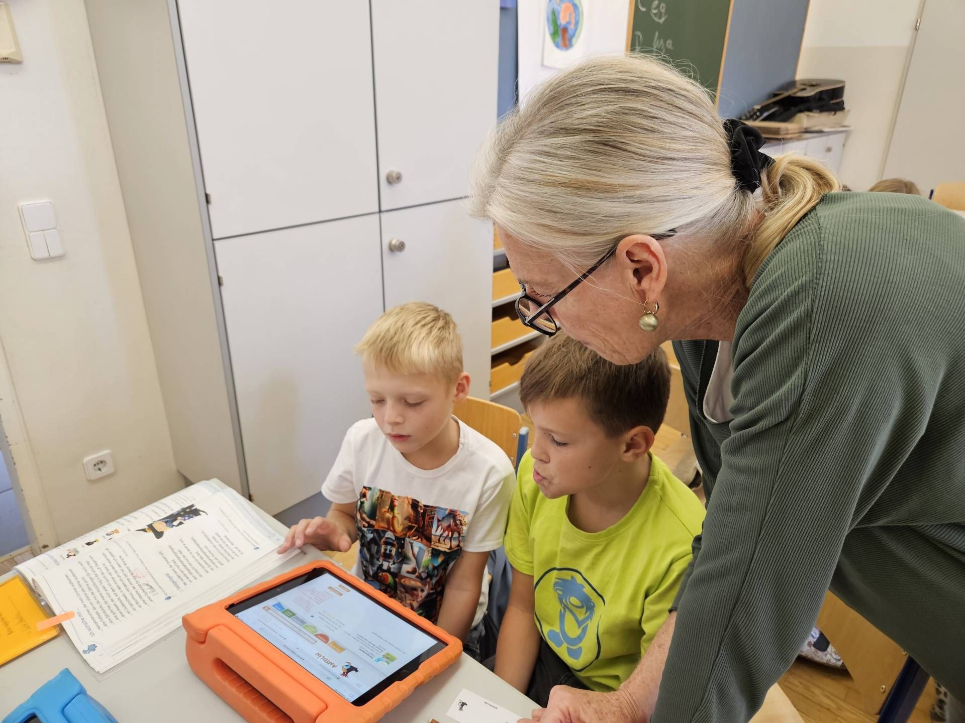 Die Schülerinnen und Schüler der 2. und 4. Klasse arbeiten derzeit gemeinsam mit dem Leseförderprogramm ANTOLIN. Dieses digitale Leseförderprogramm bietet Quizfragen zu über 120.000 Kinder- und Jugendbüchern sowie zu Sachtexten.  Die Kinder der 2. Klasse unterstützen dabei ihre älteren Mitschülerinnen und Mitschüler aus der 4. Klasse, indem sie ihnen den Einstieg in das Programm und die Nutzung des „Postkorbs“ erklären. Nach dem Einloggen mit den persönlichen Zugangsdaten bearbeiten die Kinder Leseübungen aus dem Deutschbuch und absolvieren anschließend passende Quizfragen, um ihr Textverständnis zu überprüfen.