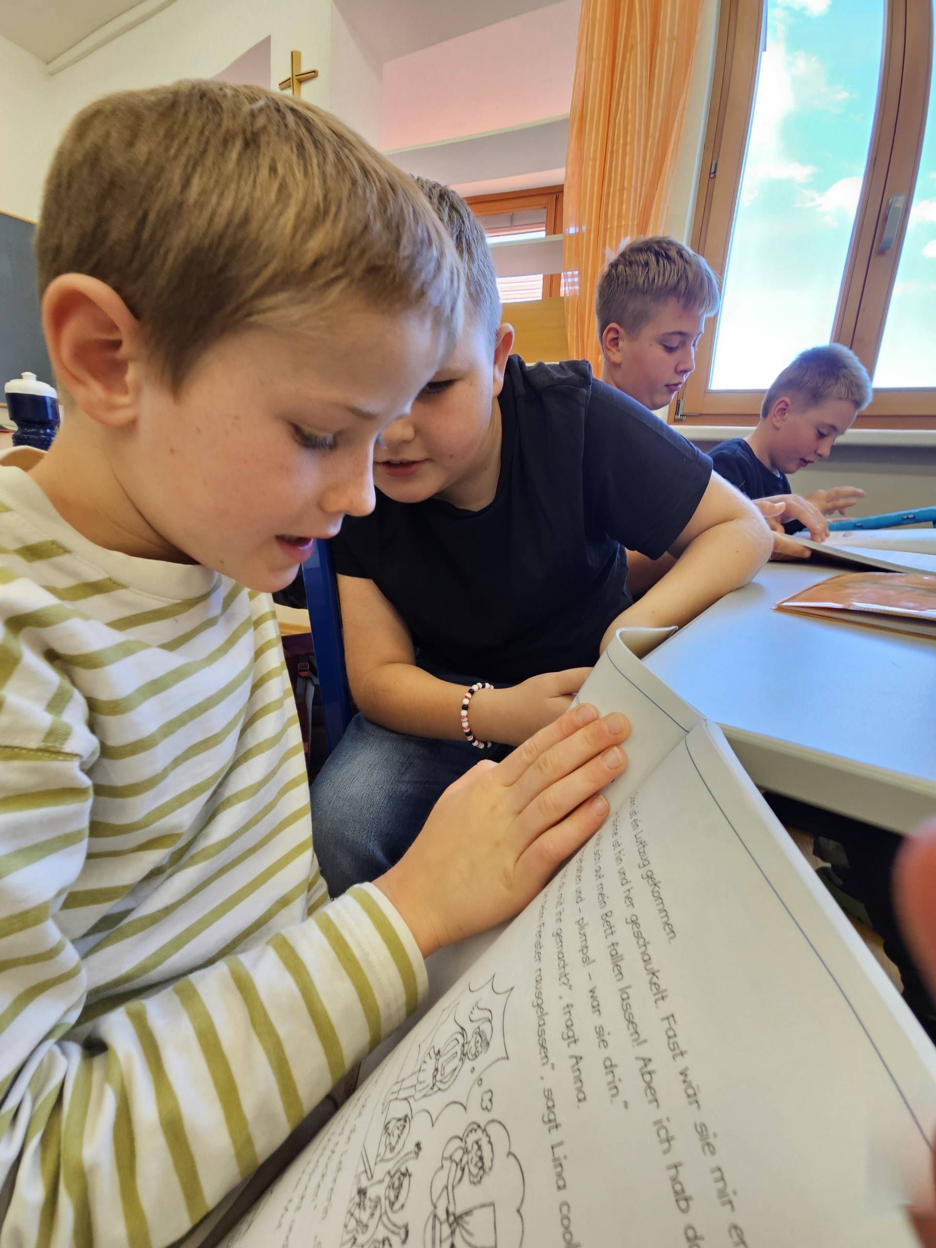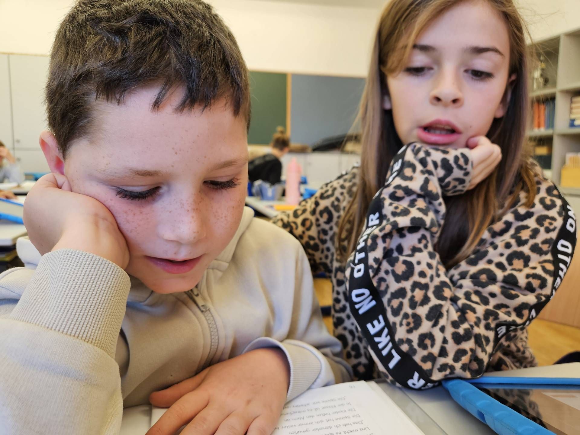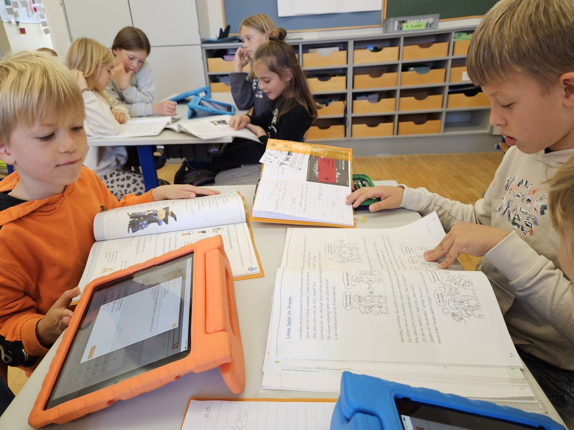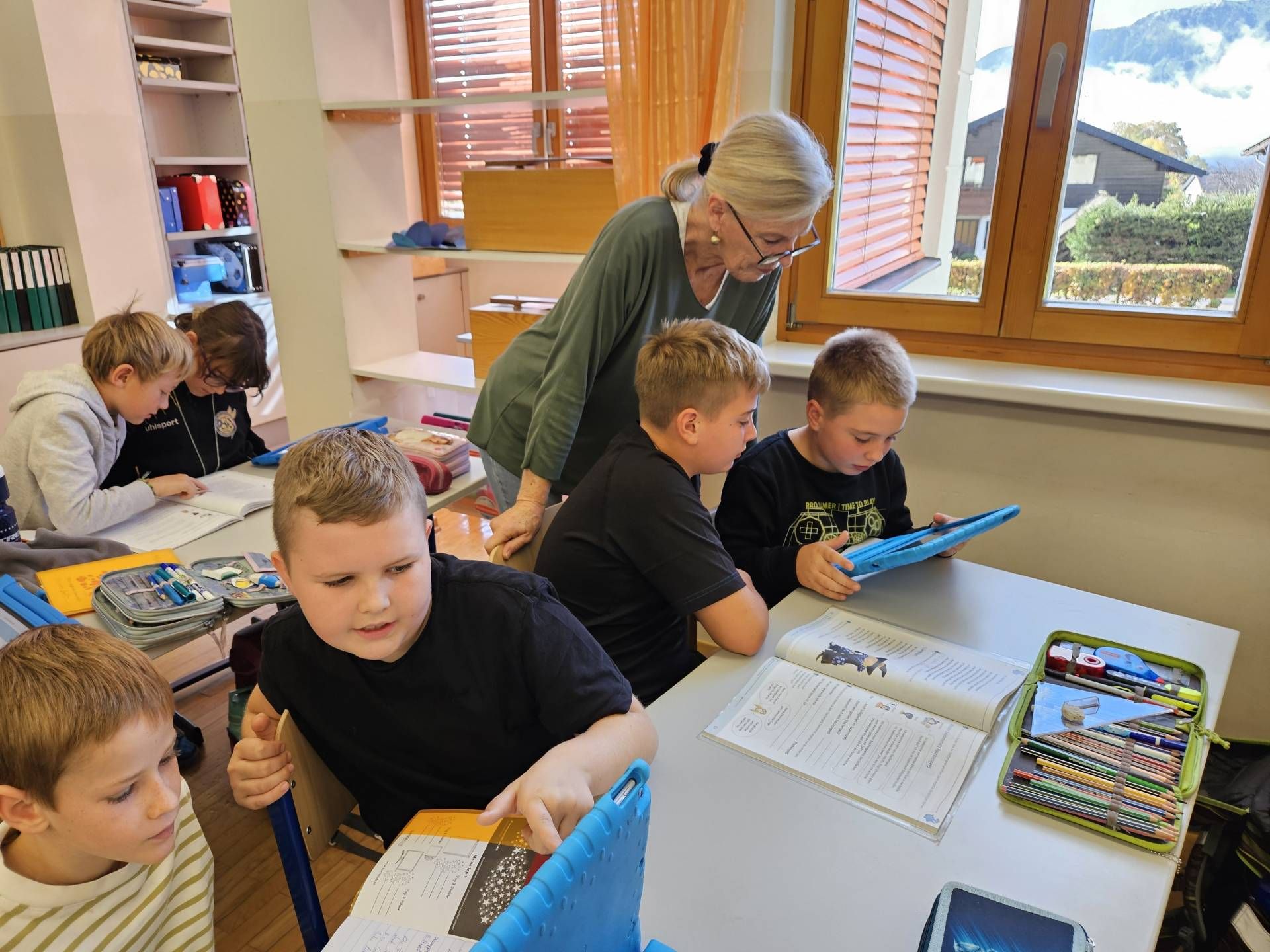 Die Schülerinnen und Schüler der 2. und 4. Klasse arbeiten derzeit gemeinsam mit dem Leseförderprogramm ANTOLIN. Dieses digitale Leseförderprogramm bietet Quizfragen zu über 120.000 Kinder- und Jugendbüchern sowie zu Sachtexten.  Die Kinder der 2. Klasse unterstützen dabei ihre älteren Mitschülerinnen und Mitschüler aus der 4. Klasse, indem sie ihnen den Einstieg in das Programm und die Nutzung des „Postkorbs“ erklären. Nach dem Einloggen mit den persönlichen Zugangsdaten bearbeiten die Kinder Leseübungen aus dem Deutschbuch und absolvieren anschließend passende Quizfragen, um ihr Textverständnis zu überprüfen.
