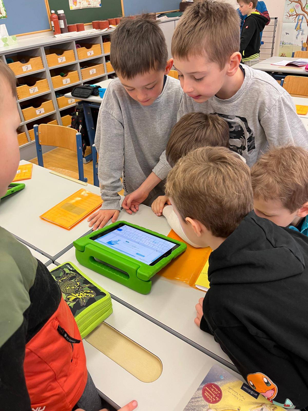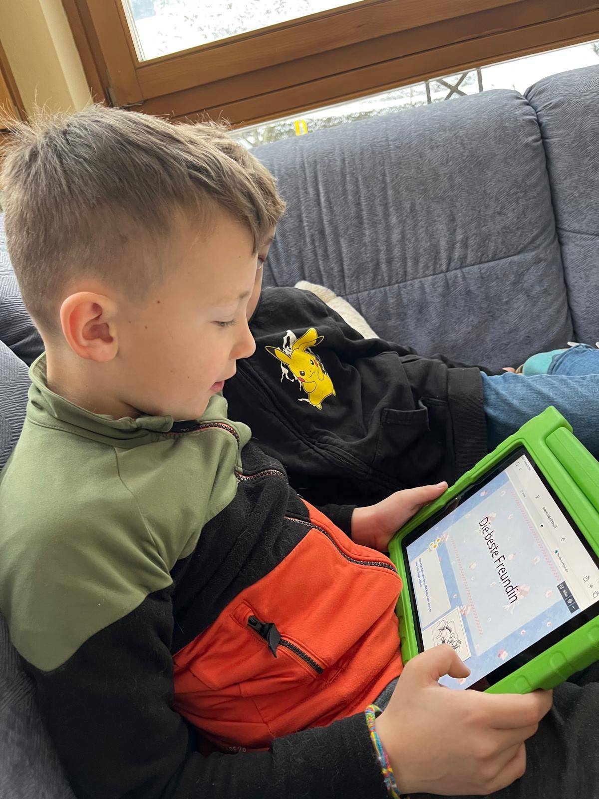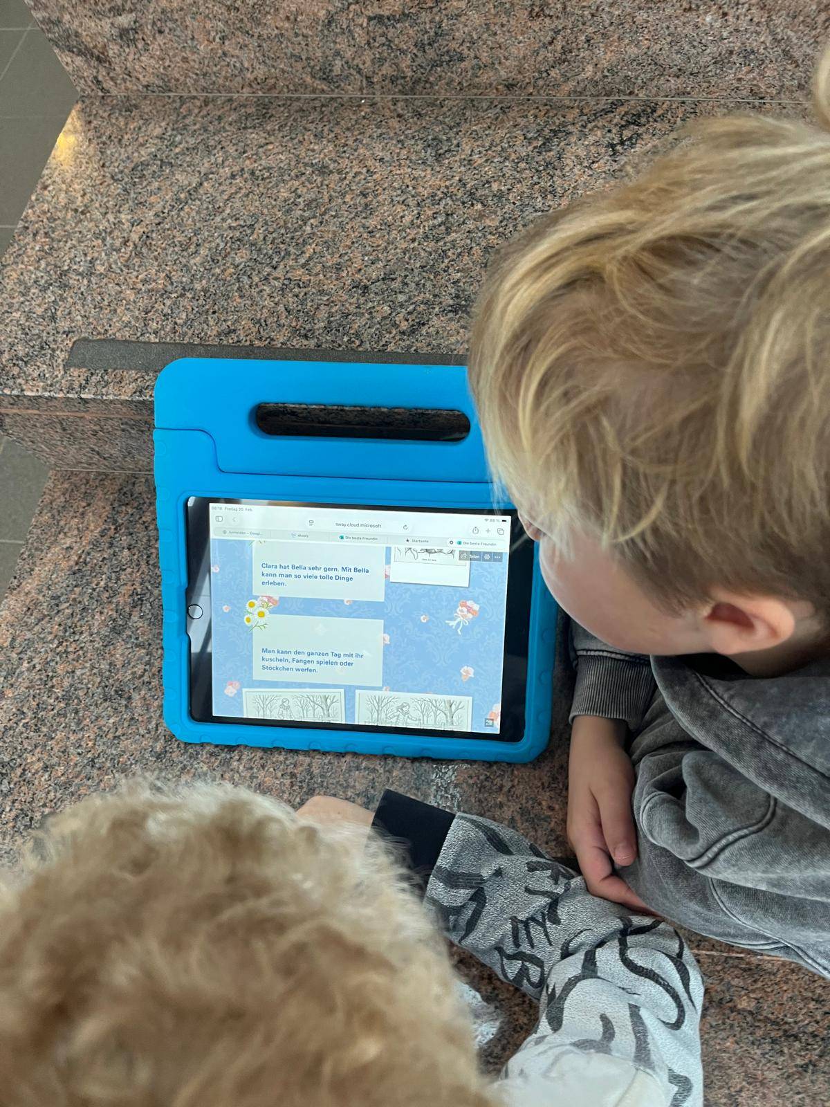 Die Schüler der 1. und 2. Klassen erlebten gemeinsam eine spannende Lesestunde. Auf dem iPad, mit einer in Microsoft Sway erstellten Geschichte über Freundschaft, lasen zuerst die Großen den Kleinen vor. Anschließend hörten und lasen alle gemeinsam.