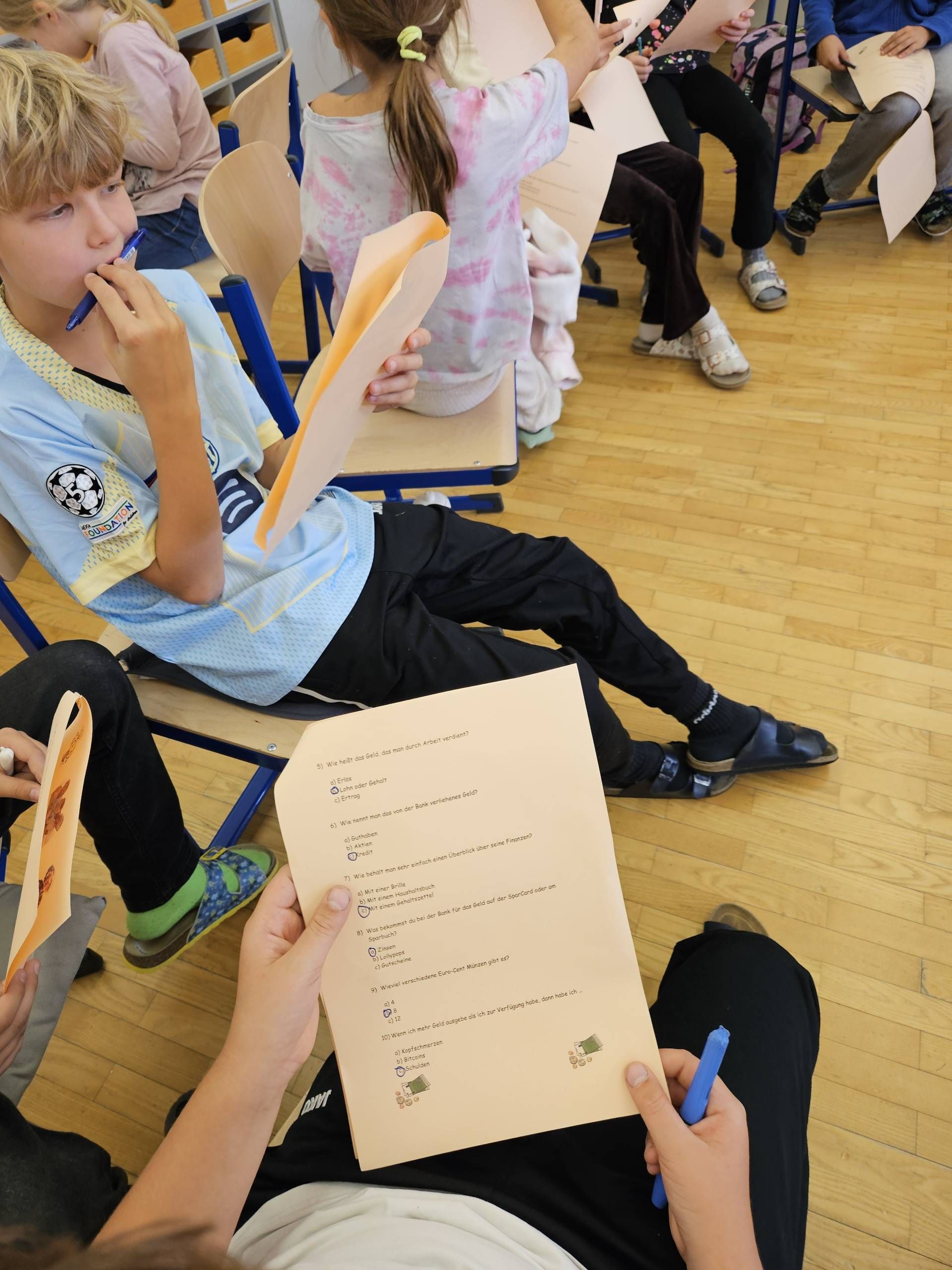 Im interaktiven Unterricht lernten die Kinder, was Geld wert ist, wie man vernünftig plant, spart und kleine finanzielle Entscheidungen selbstständig trifft. Themen wie die Geschichte des Geldes, Wünsche und Bedürfnisse, Sparziele und das Erkennen von Sicherheitsmerkmalen auf Banknoten wurden erarbeitet.