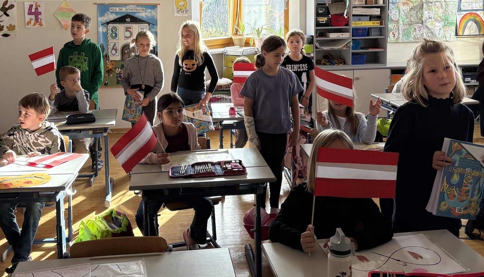 Anlässlich des 26. Oktobers gab es heute mit der ersten und dritten Klasse eine kleine Feier.