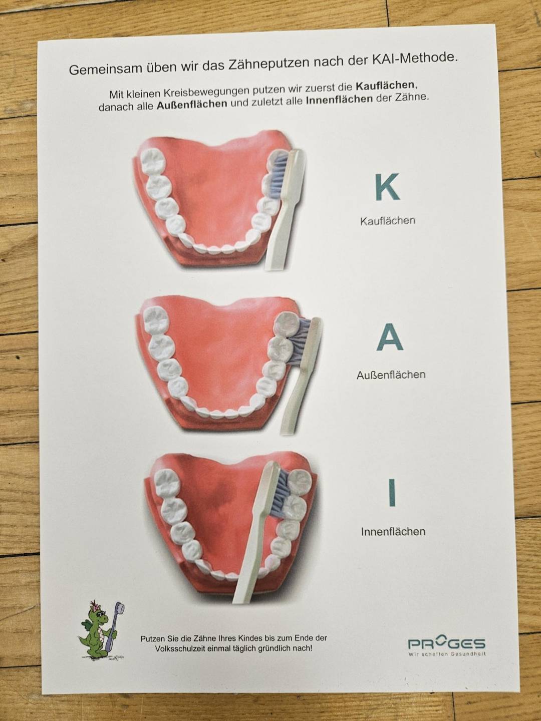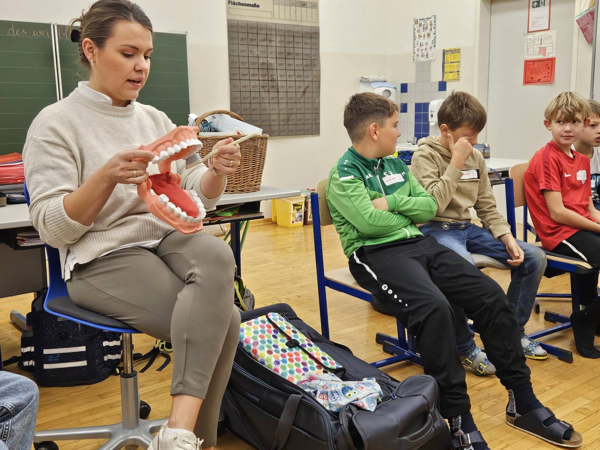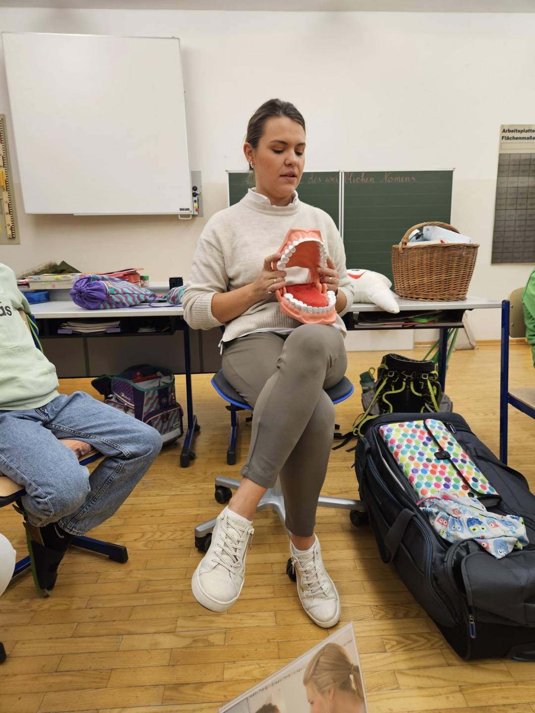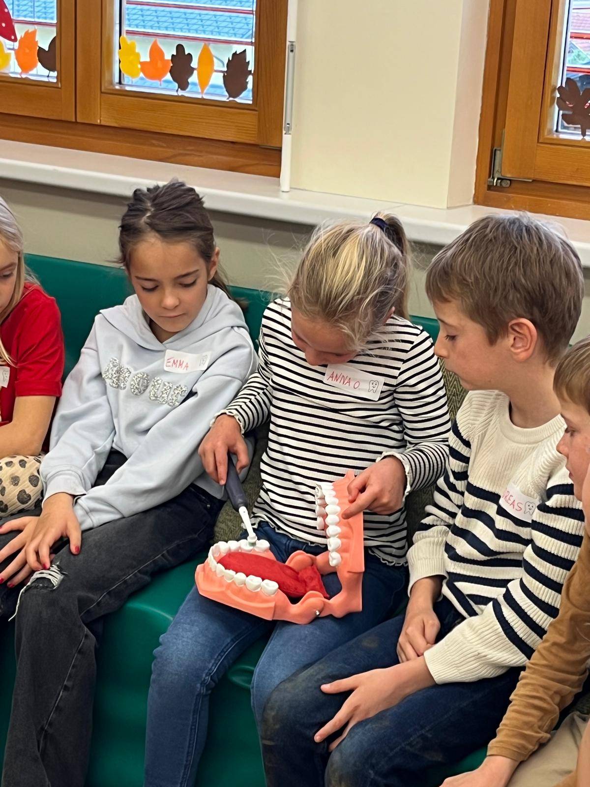 Wir lernten die KAI-Methode kennen, mit der gründliches Zähneputzen ganz einfach gelingt. Anschaulich wurde erklärt, wie Karies entsteht und aus welchen Teilen ein Zahn besteht. Besonders spannend: Frau Zerina Sivič, Zahnarztassistentin, stellte die Instrumente vor, die ein Zahnarzt benutzt und zeigte deren Funktionen.