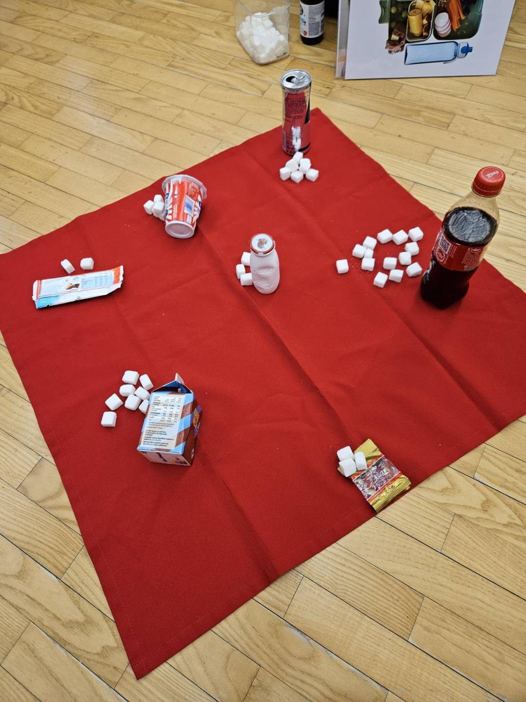 Auch das Thema Ernährung spielte eine große Rolle. Wir untersuchten den Zuckergehalt verschiedener Nahrungsmittel und setzten uns mit der Ernährungspyramide auseinander, um zu erkennen, welche Lebensmittel für gesunde Zähne besonders wichtig sind.